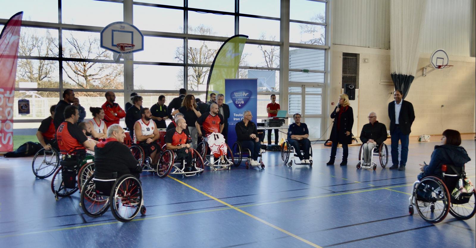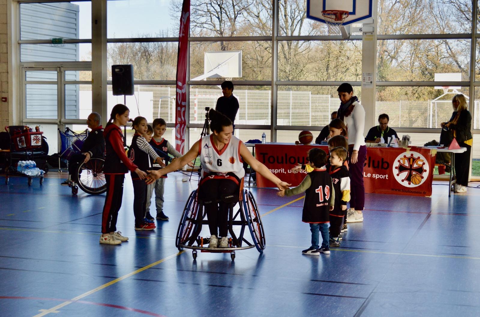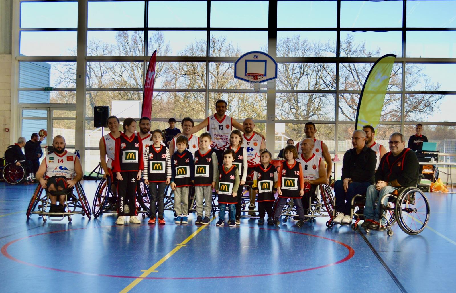 Céline avec des jeunes licenciés du BSO lors de la soirée des vœux du maire